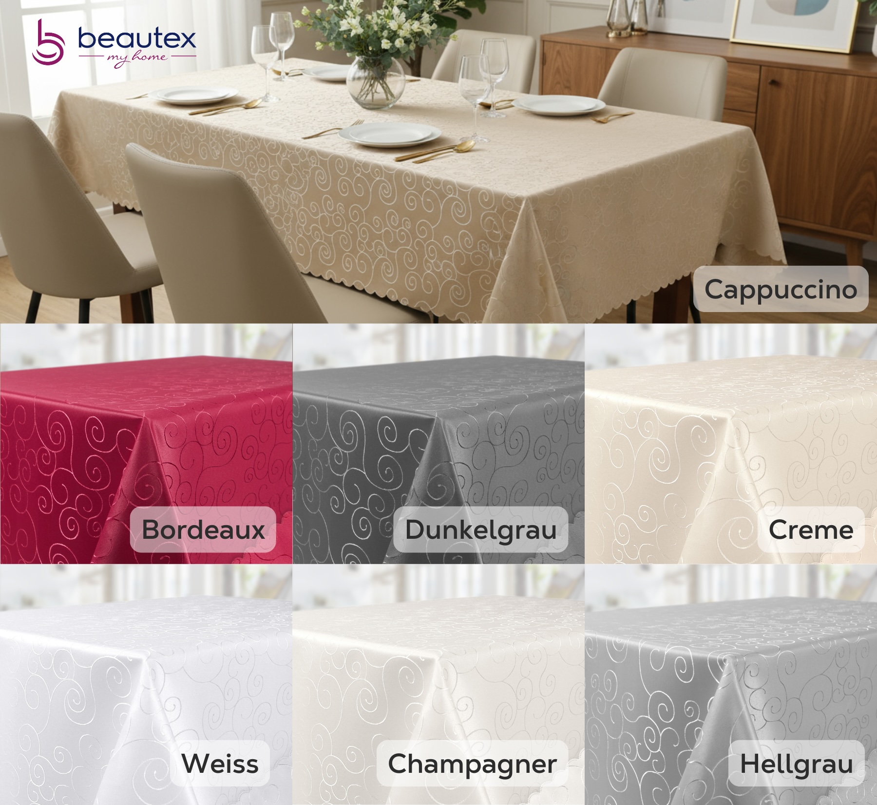Beautex Tischdecke Damast Ornamente - Bügelfreie Tischdecken - Fleckenabweisend und pflegeleicht